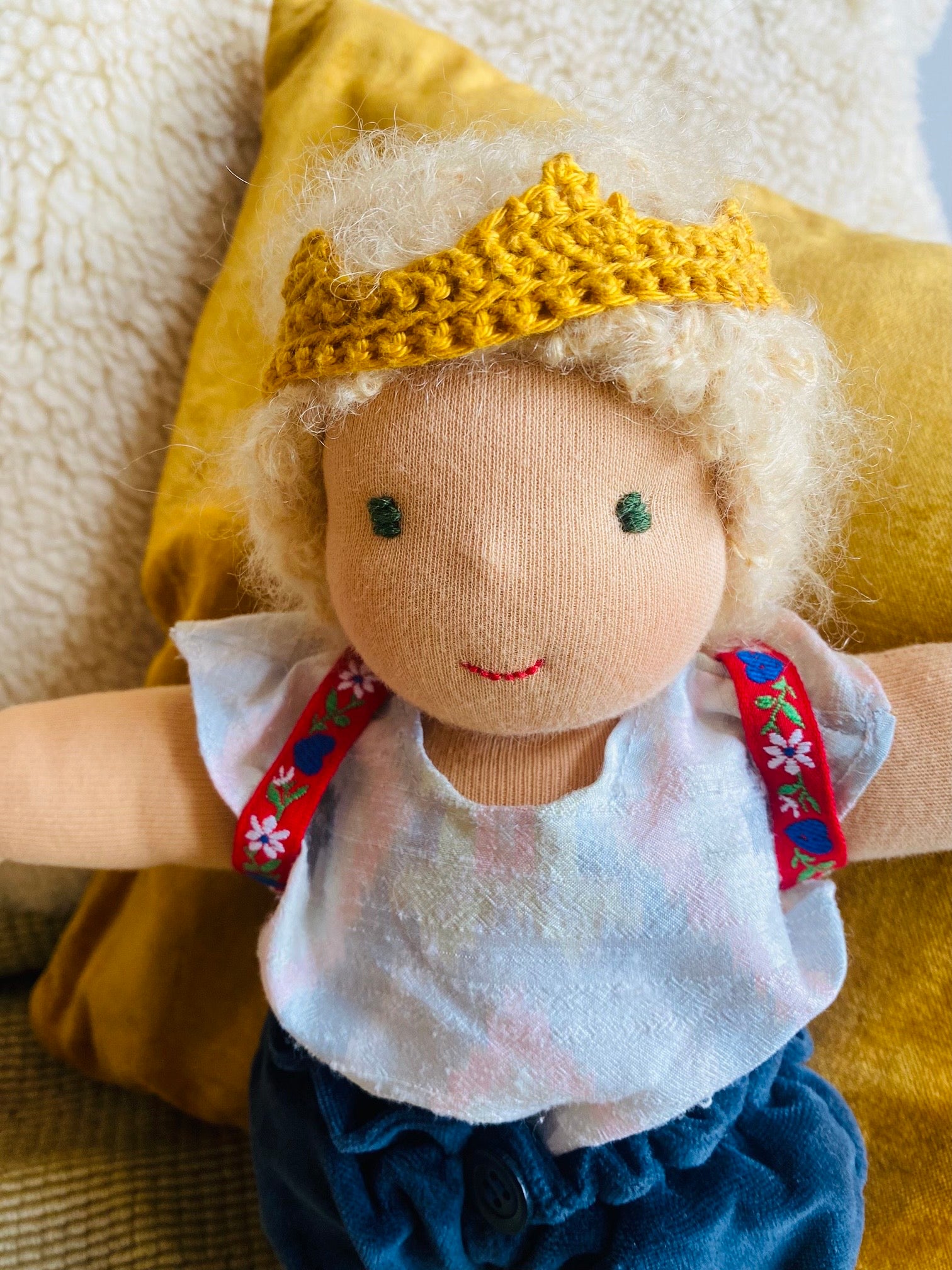 Es ist eine Stoffpuppe nach Waldorfart.