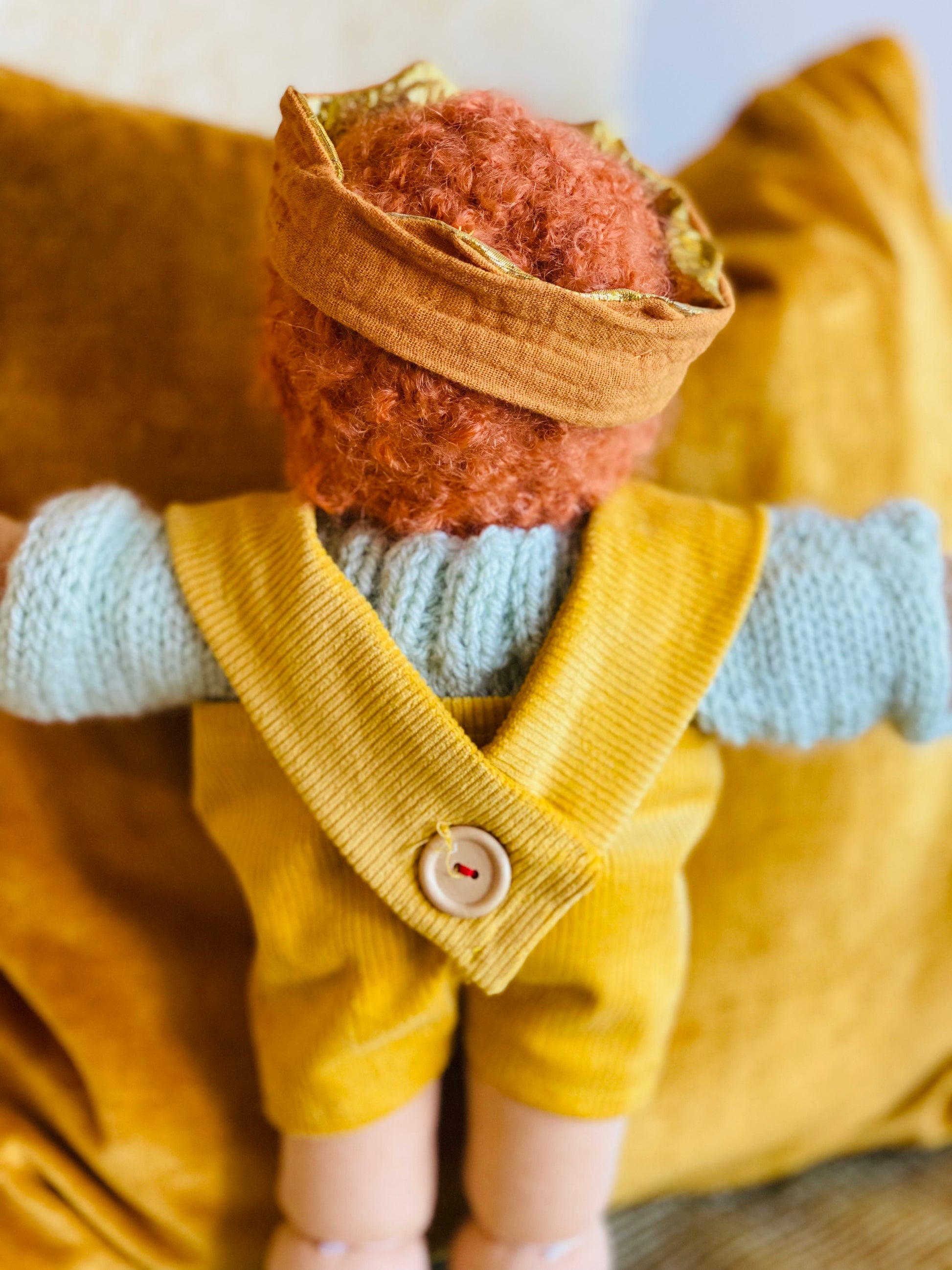 Die Mohair-Locke besteht aus 74% Mohair, 17% Schurwolle und 9% Polyamid und der Puppenjersey kommt von “Puppenstoffe” aus der Schweiz ist OEKO-TEX® zertifiziert und super robust.