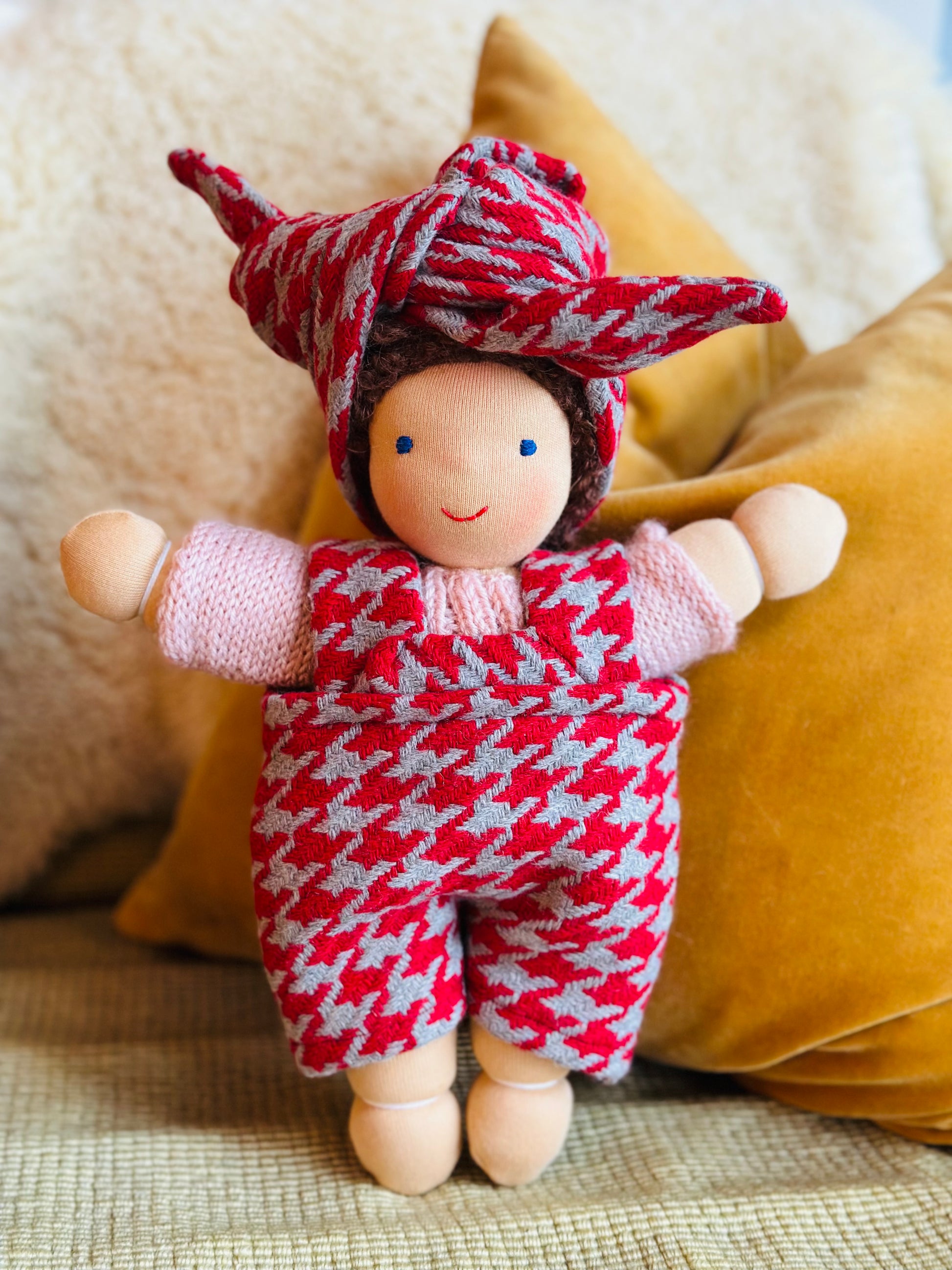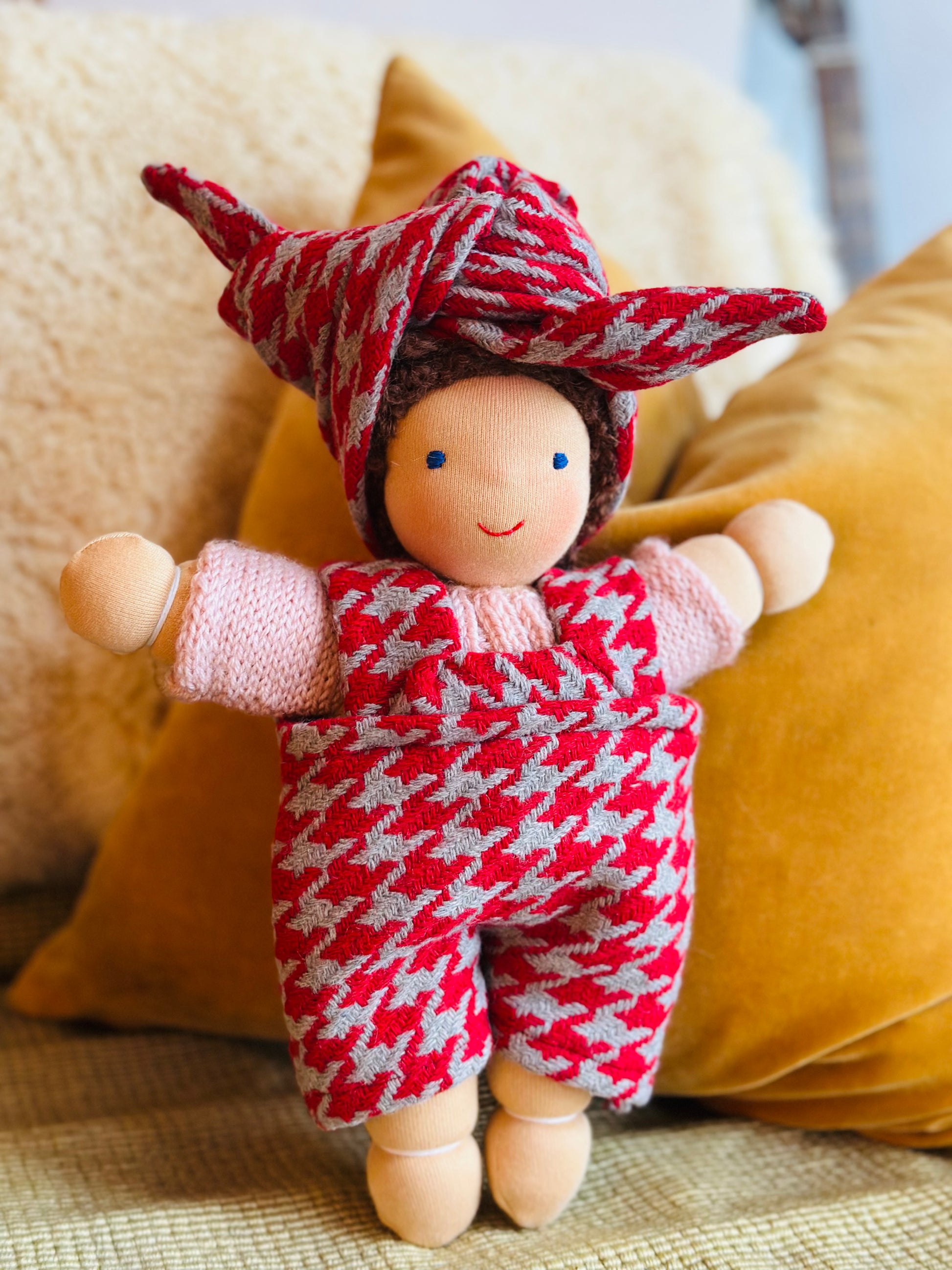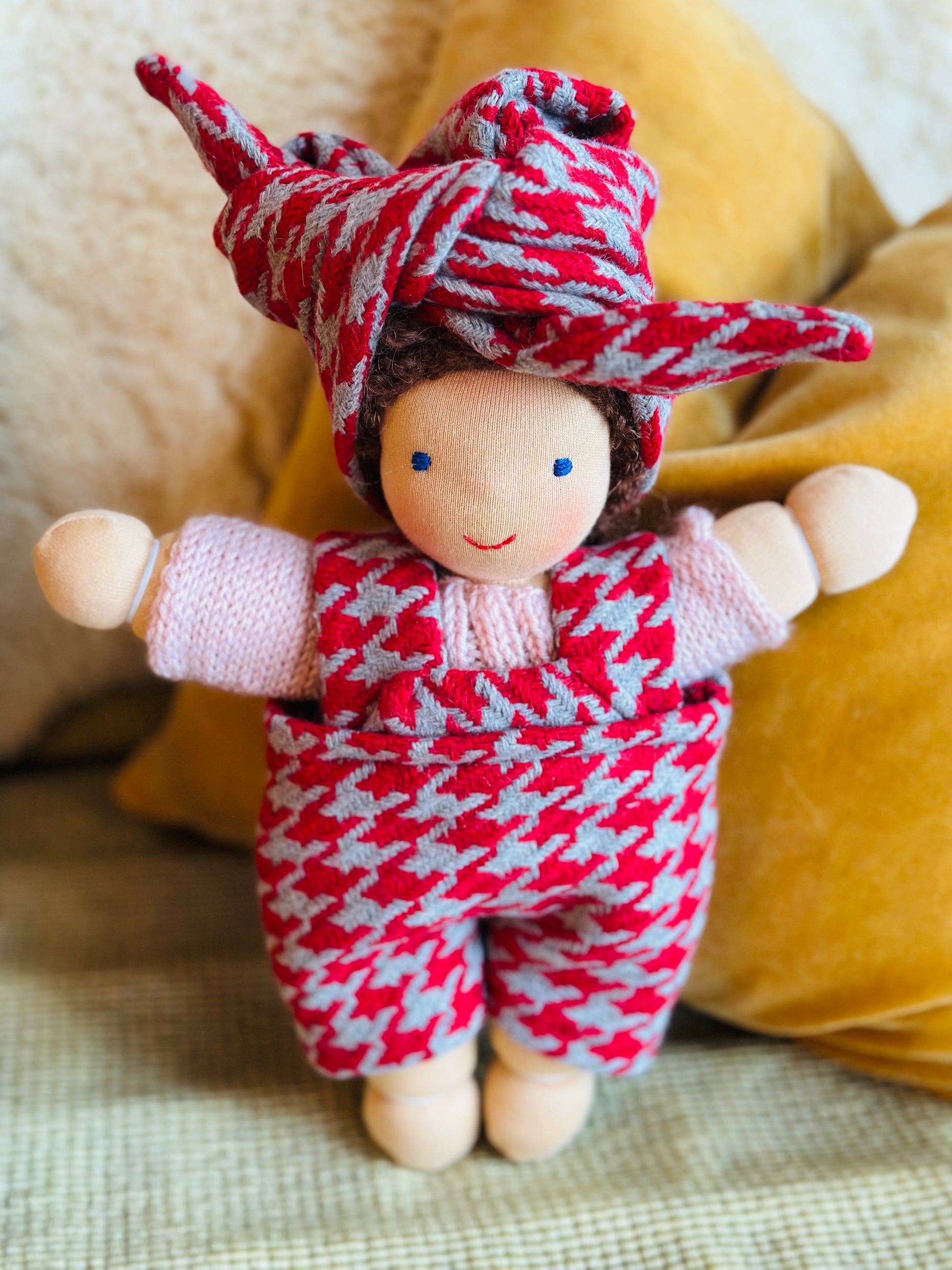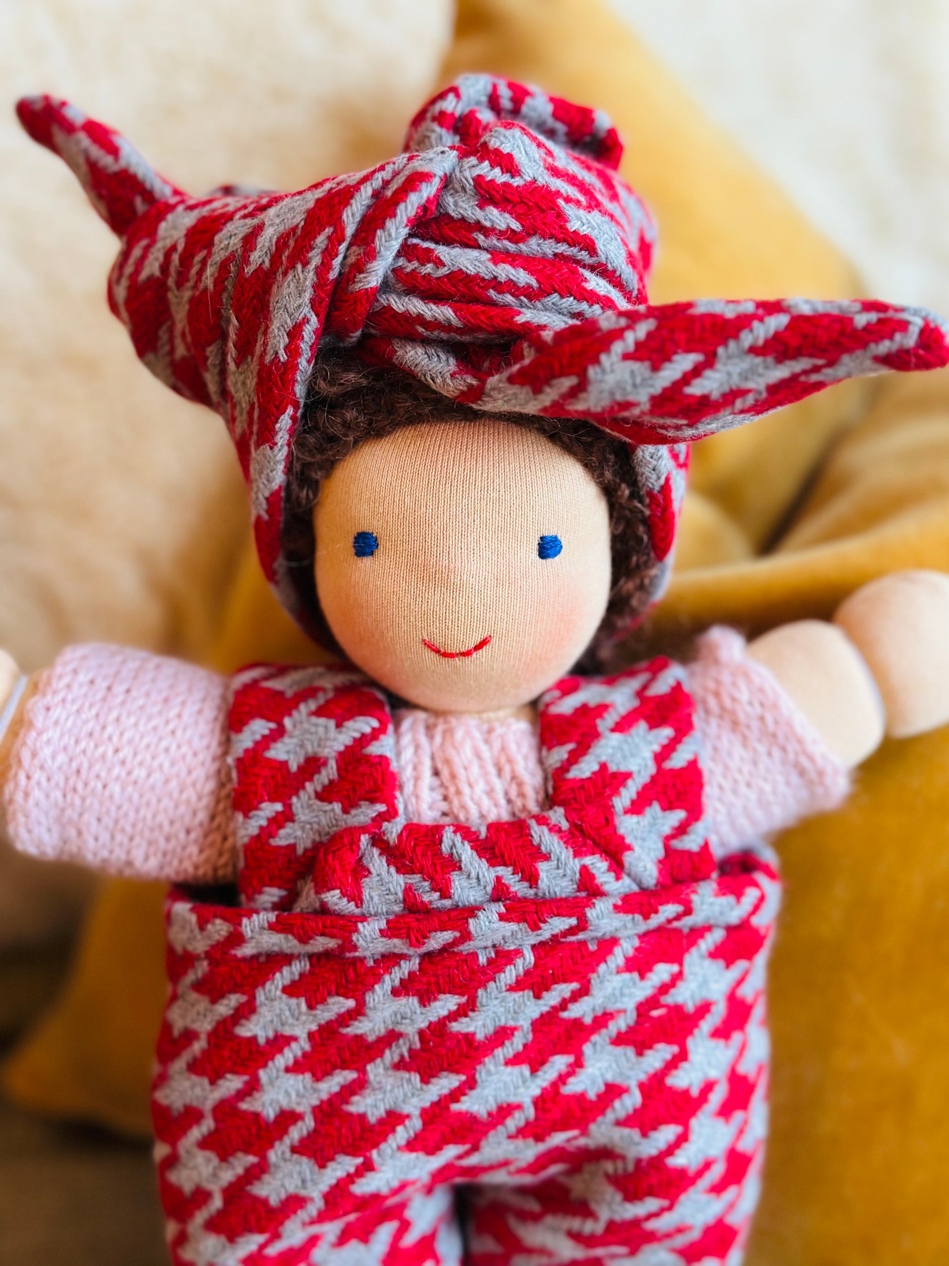 COCO ist ein kleines, ca. 33 cm großes, kuscheliges Waldorf-Puppenkind und ist gefüllt mit gesunder De Witte Engel OEKO-TEX® zertifizierter Schafwolle.