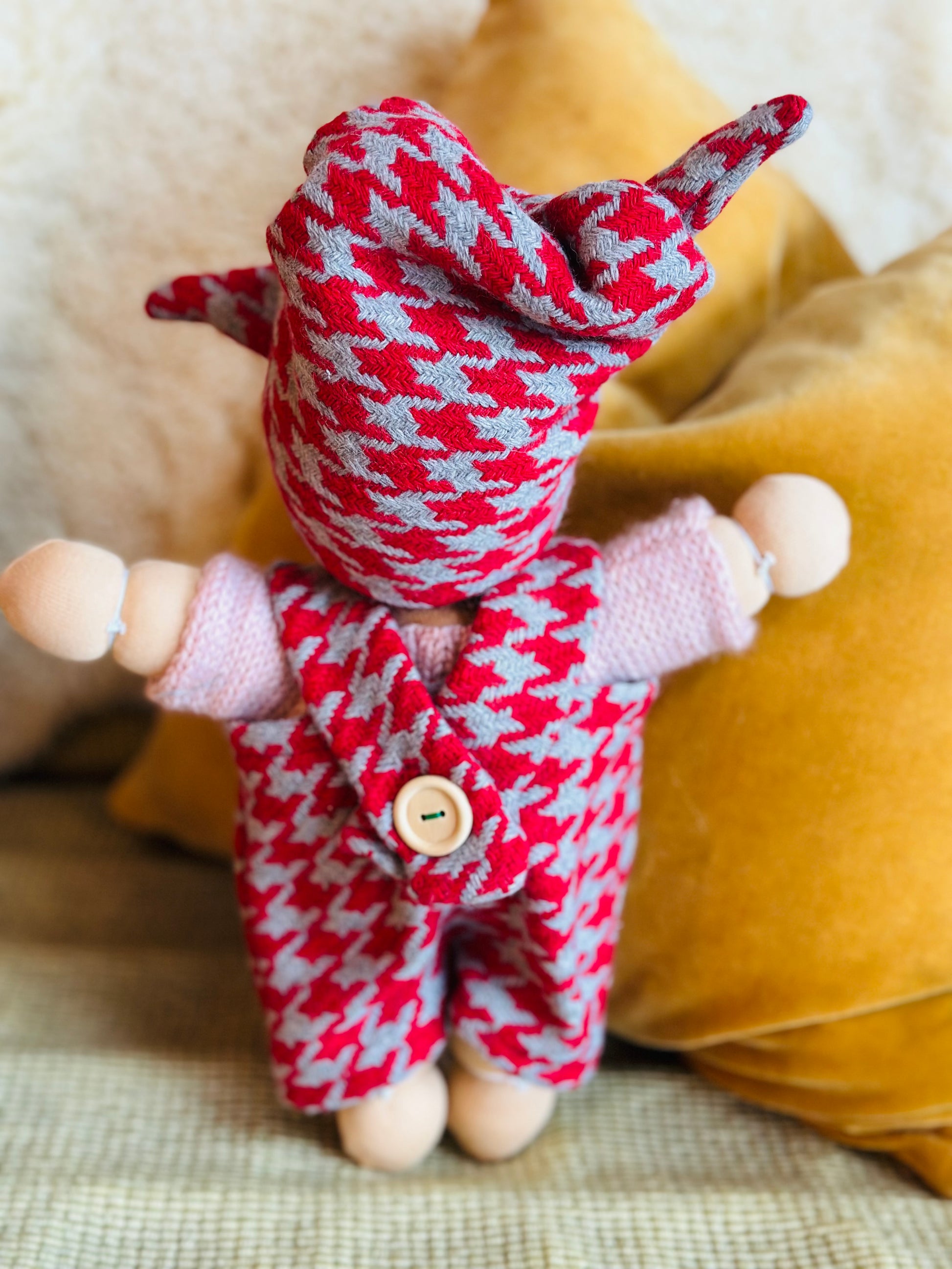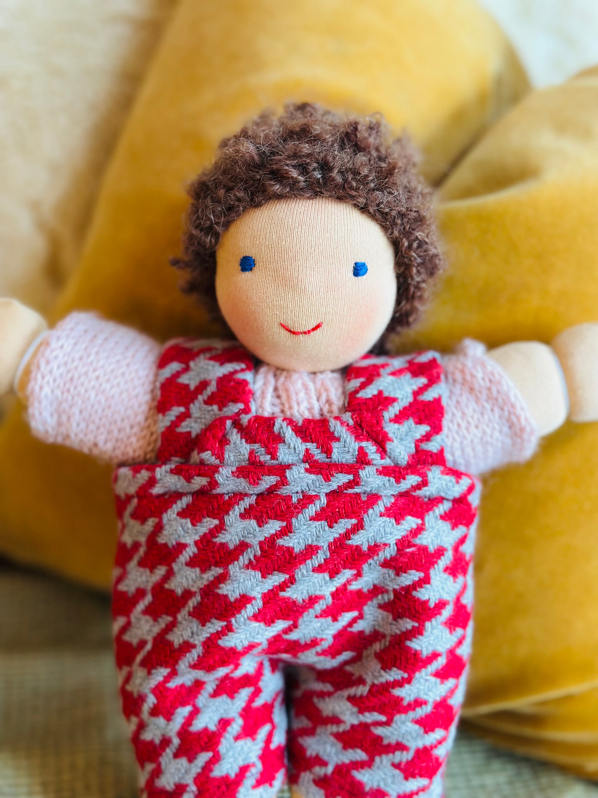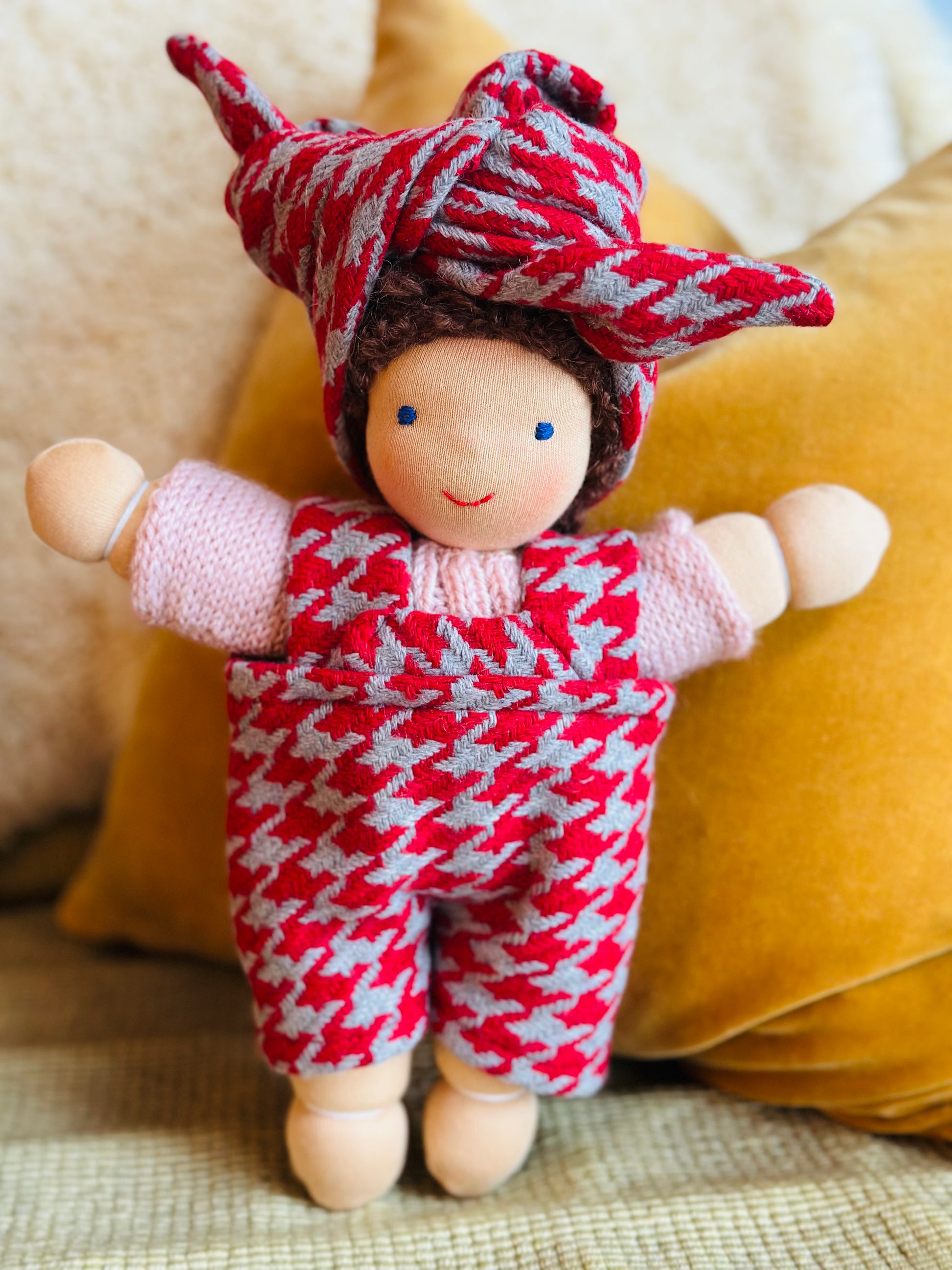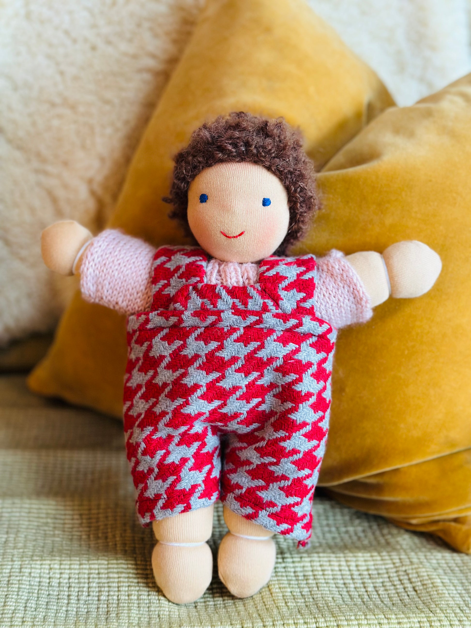 COCO ist ein kleines, ca. 33 cm großes, kuscheliges Waldorf-Puppenkind und ist gefüllt mit gesunder De Witte Engel OEKO-TEX® zertifizierter Schafwolle.