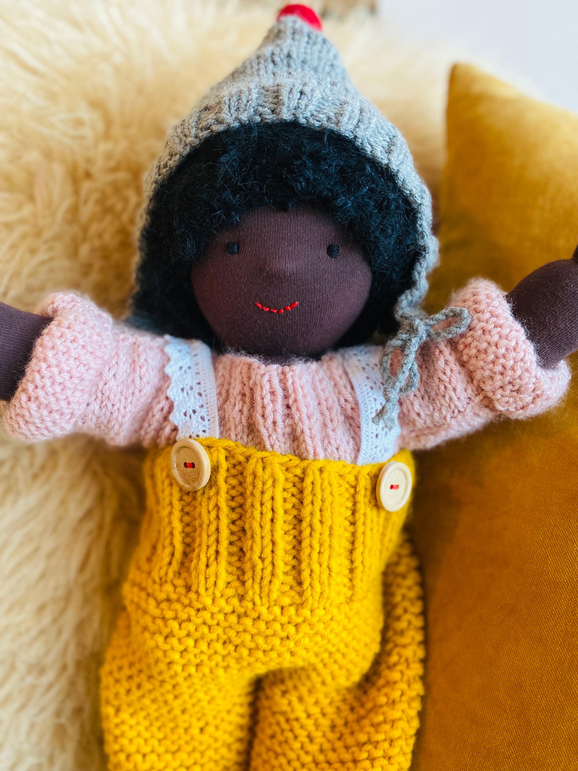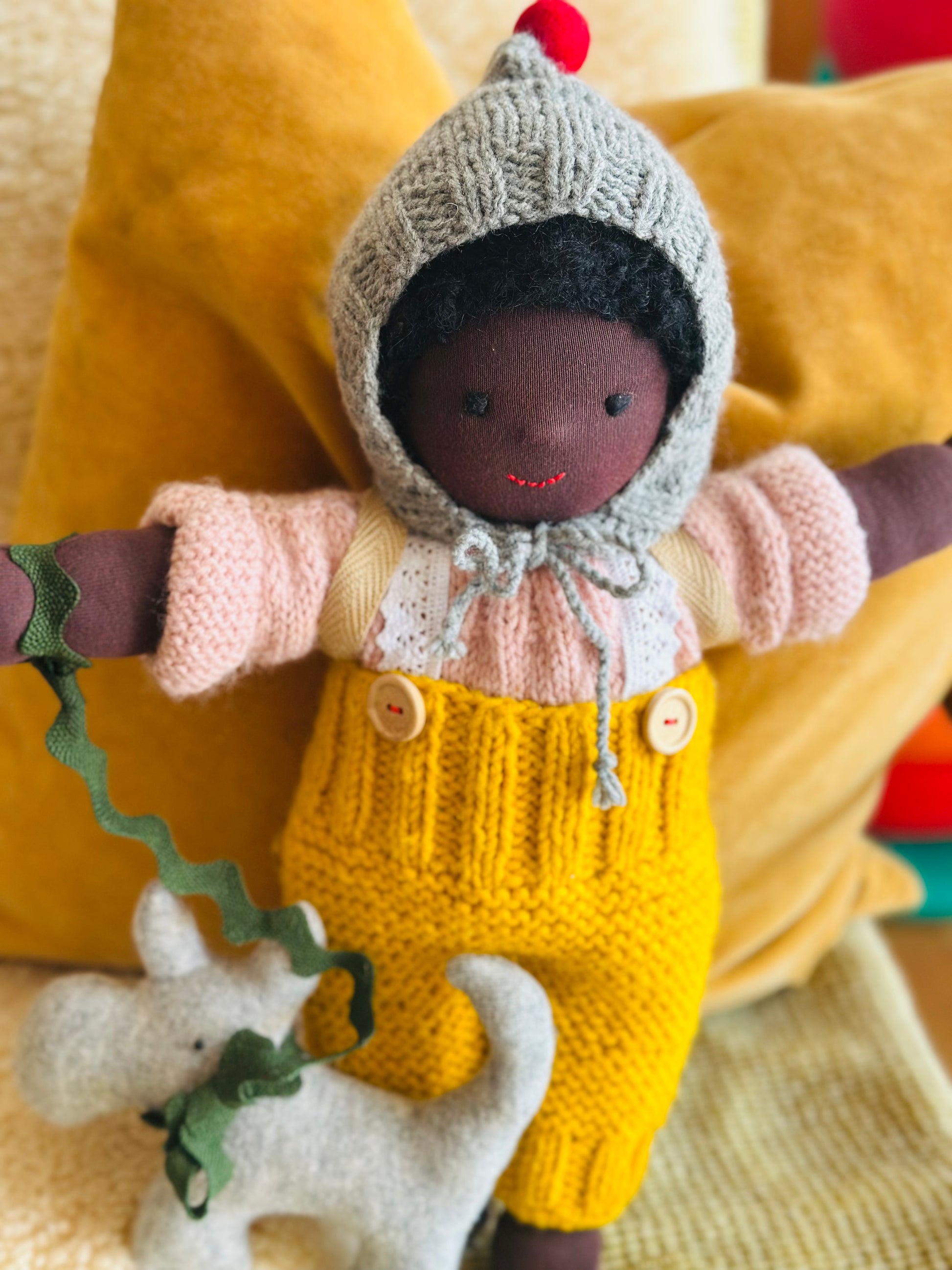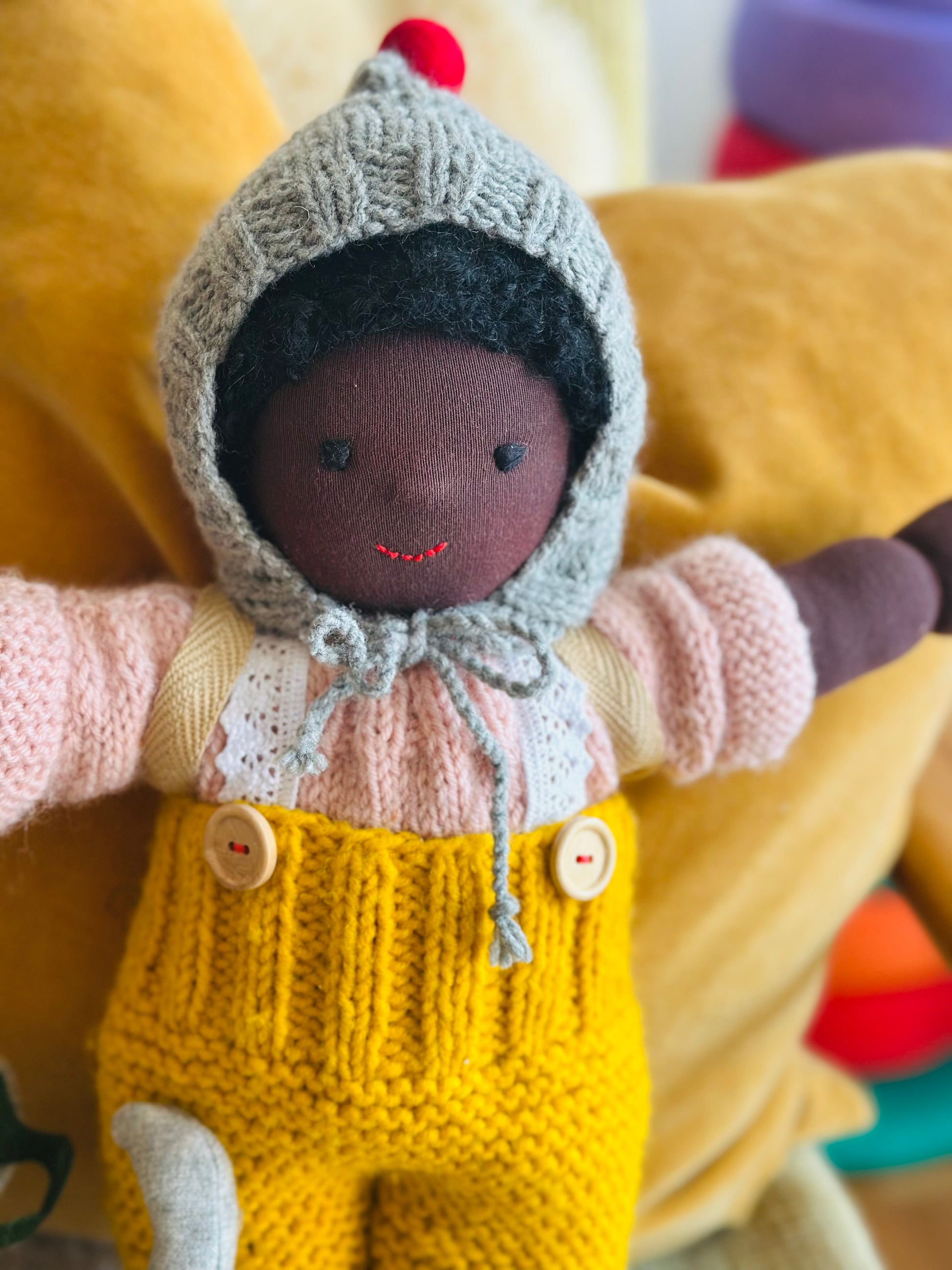 COSIMA ist ein kleines, ca. 39 cm großes, kuscheliges Puppenkind.