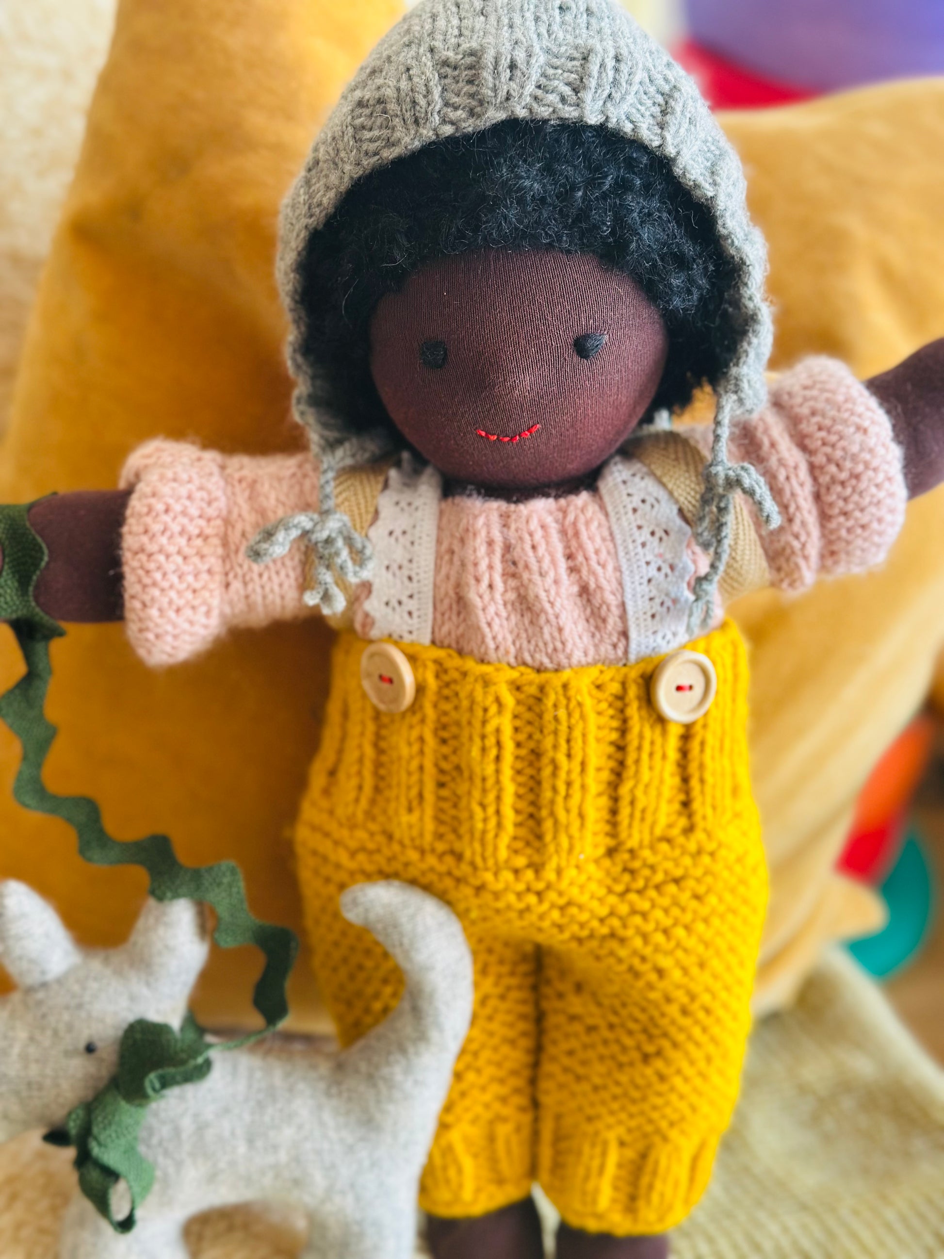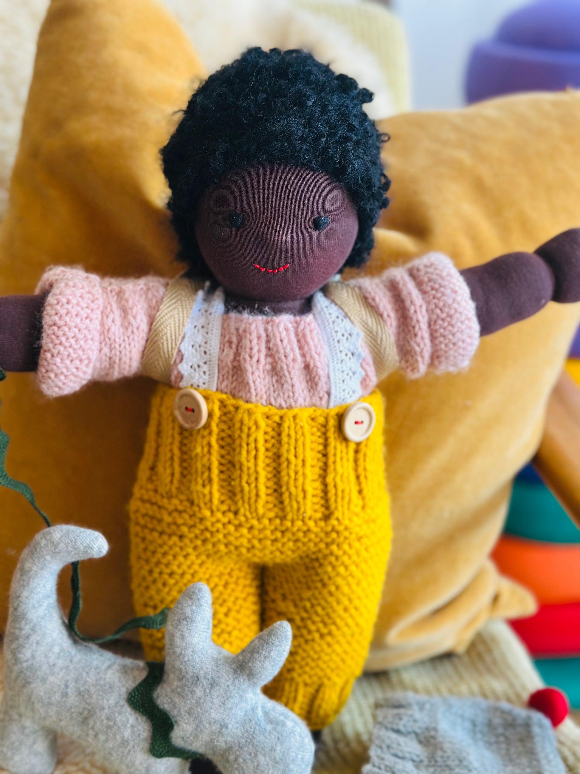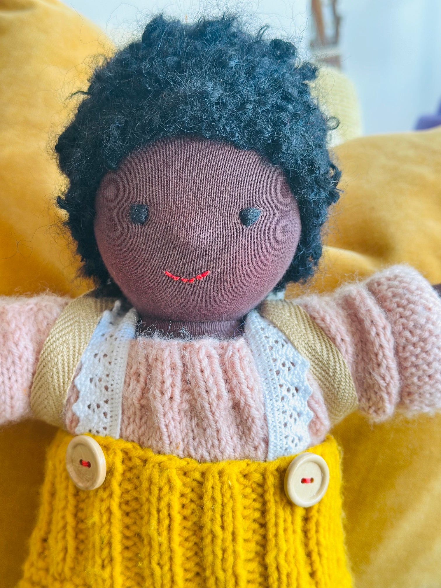 COSIMA ist ein kleines, ca. 39 cm großes, kuscheliges Puppenkind.