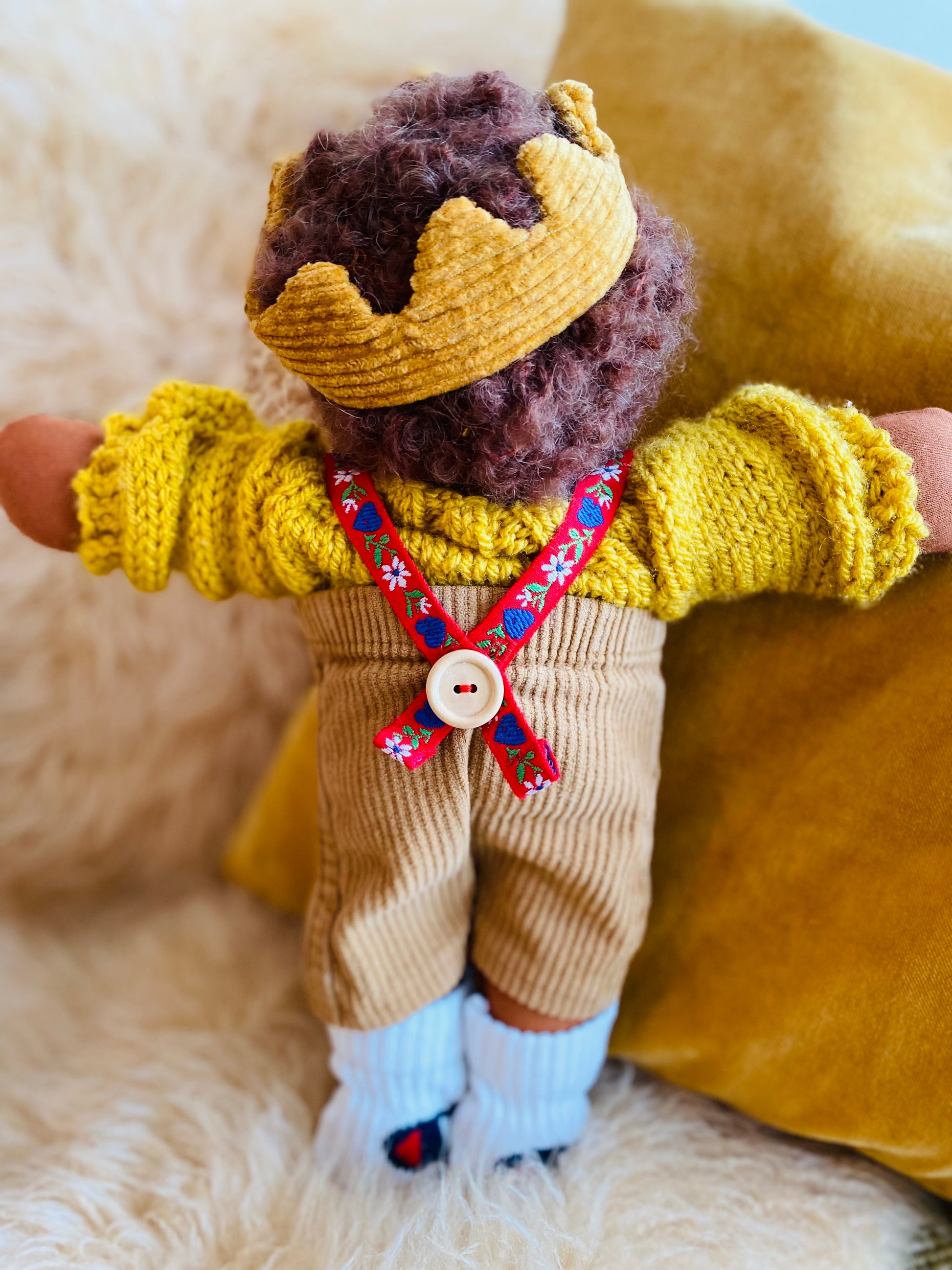 Die Mohair-Locke besteht aus 74% Mohair, 17% Schurwolle und 9% Polyamid und der Puppenjersey kommt von “Puppenstoffe” aus der Schweiz ist OEKO-TEX® zertifiziert und super robust.Share