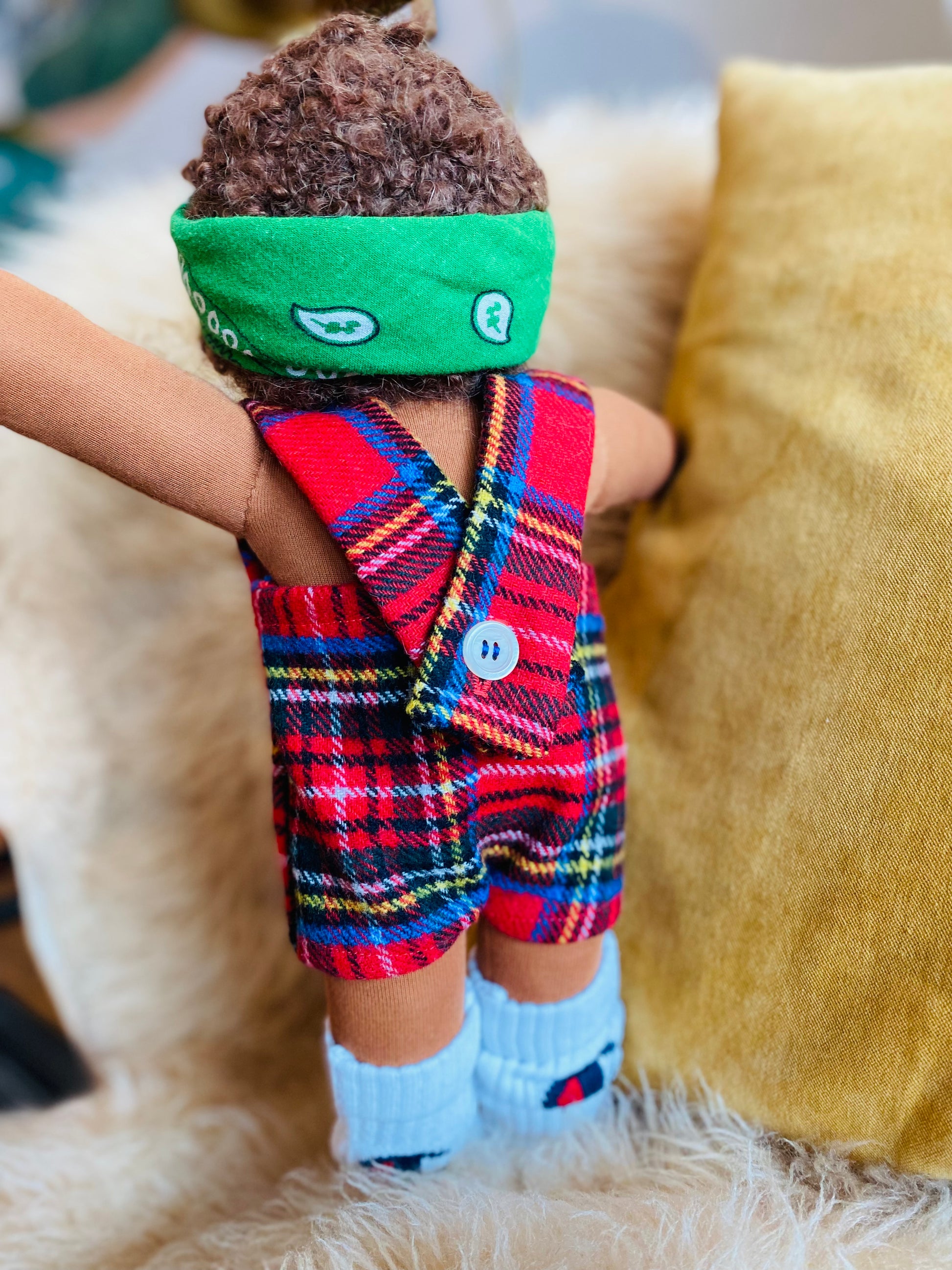 Der Hosenanzug ist aus einem vintage Schottenkaro. An den Füsschen sind lässige 80er Champions Sportsocken.