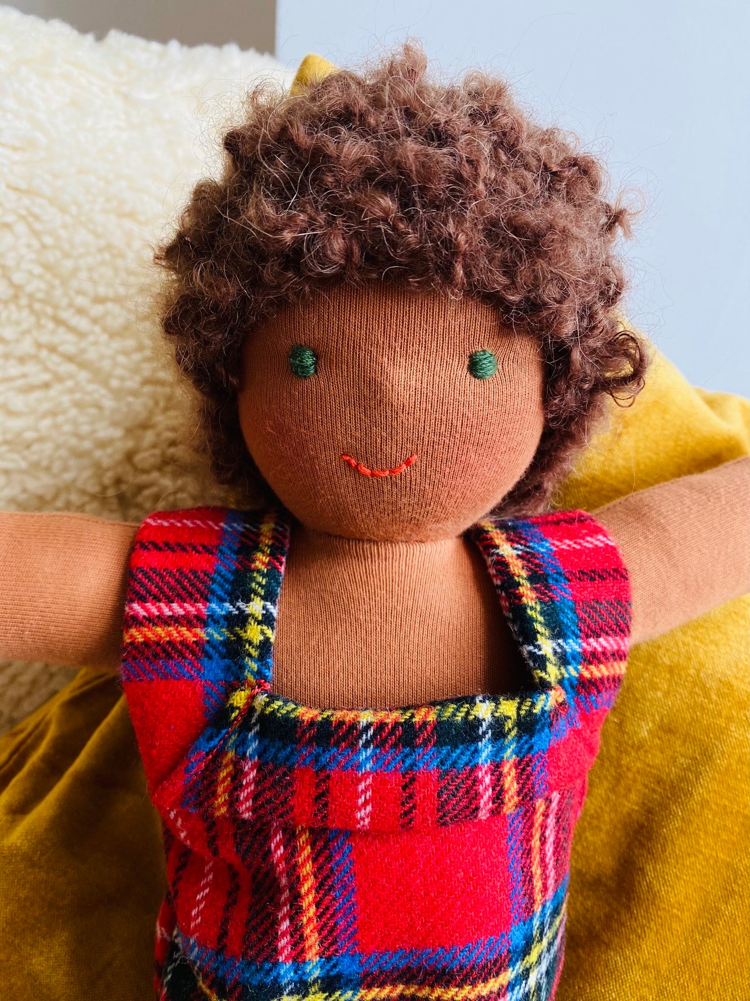 Die Mohair-Locke besteht aus 74% Mohair, 17% Schurwolle und 9% Polyamid und der Puppenjersey kommt De Witte Engel, ist OEKO-TEX® zertifiziert und super robust.Share