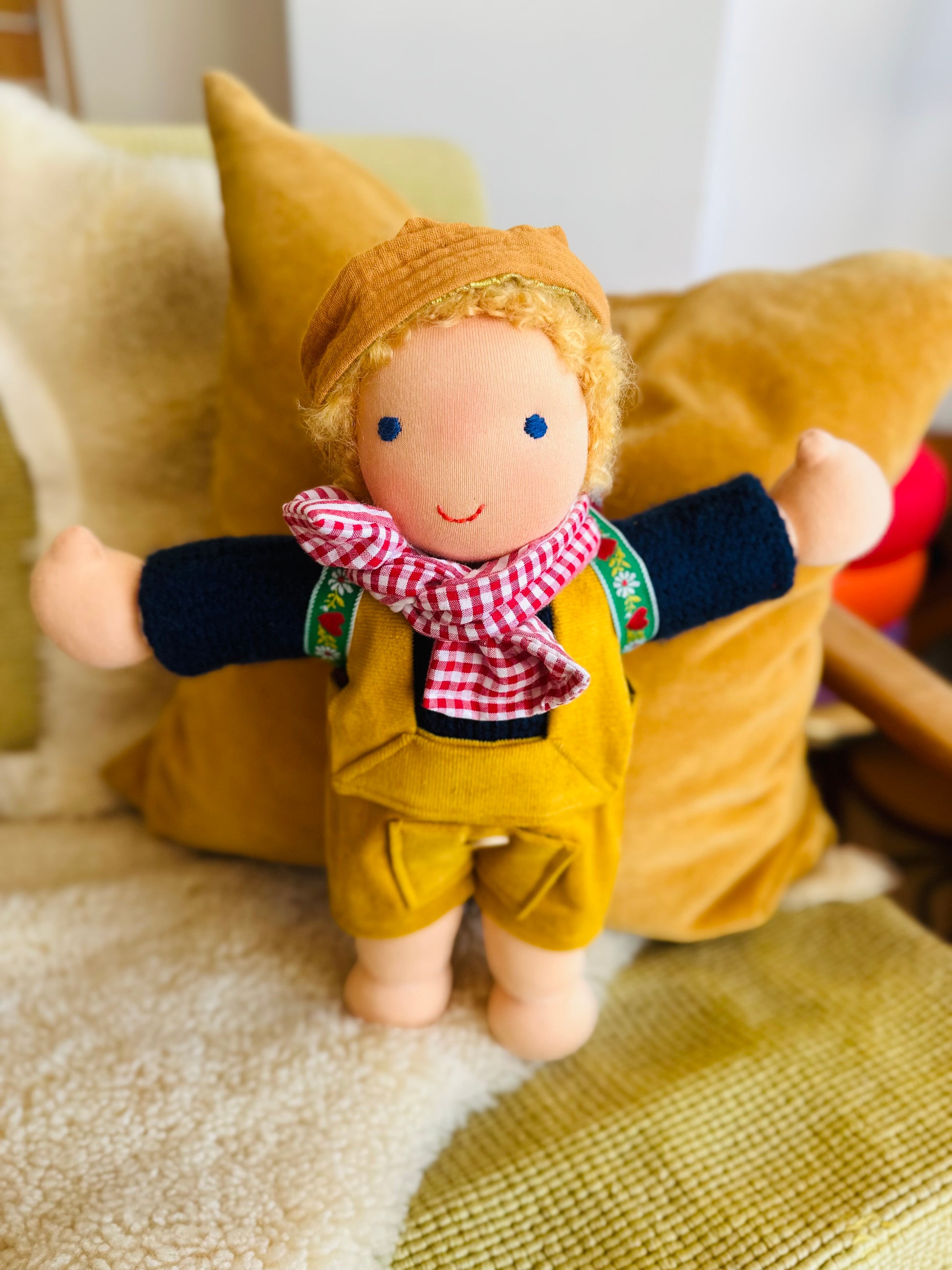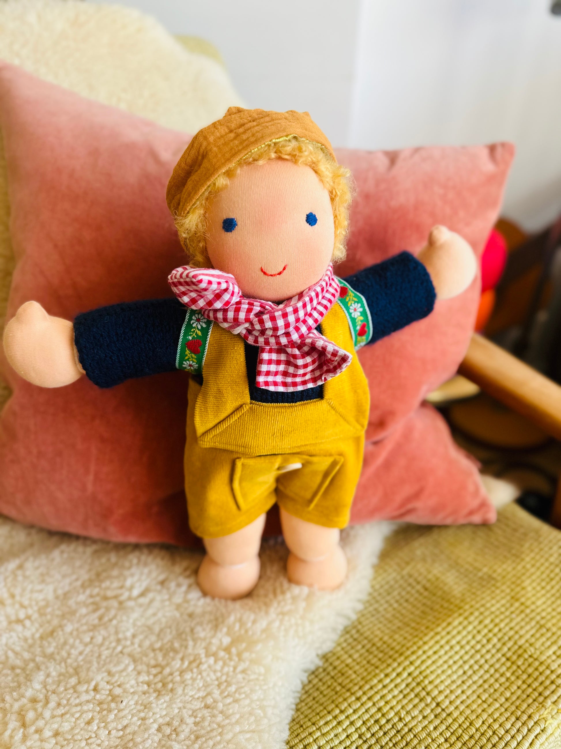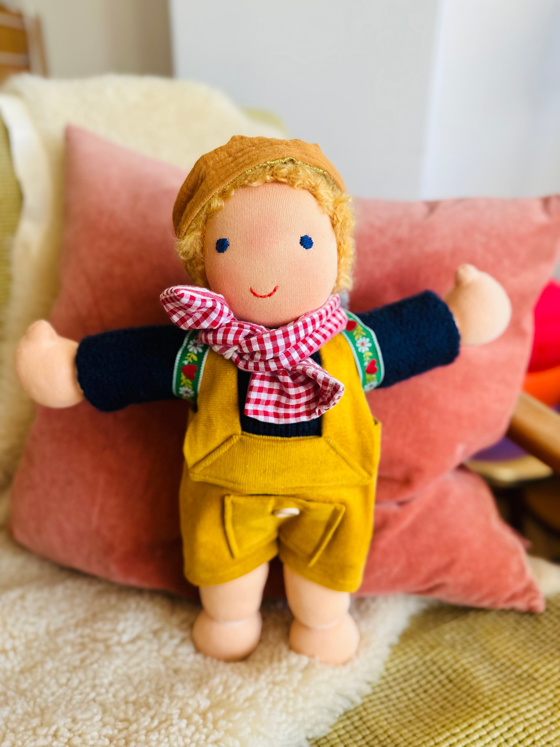 JUNES 👑 ist ein kleines, ca. 36 cm großes, kuscheliges Waldorf-Puppenkind.