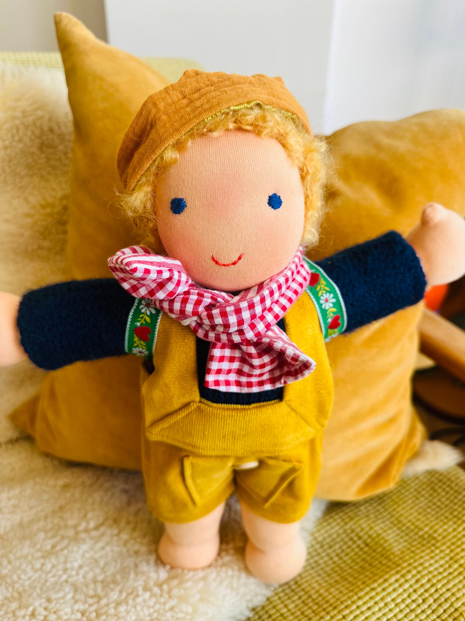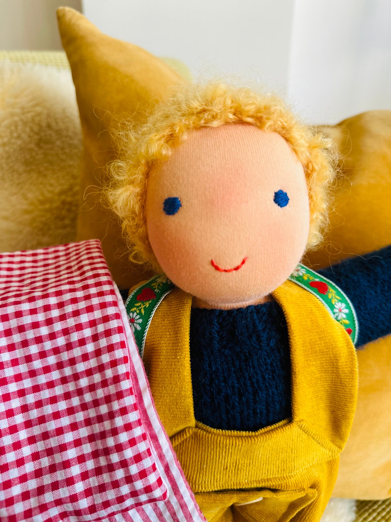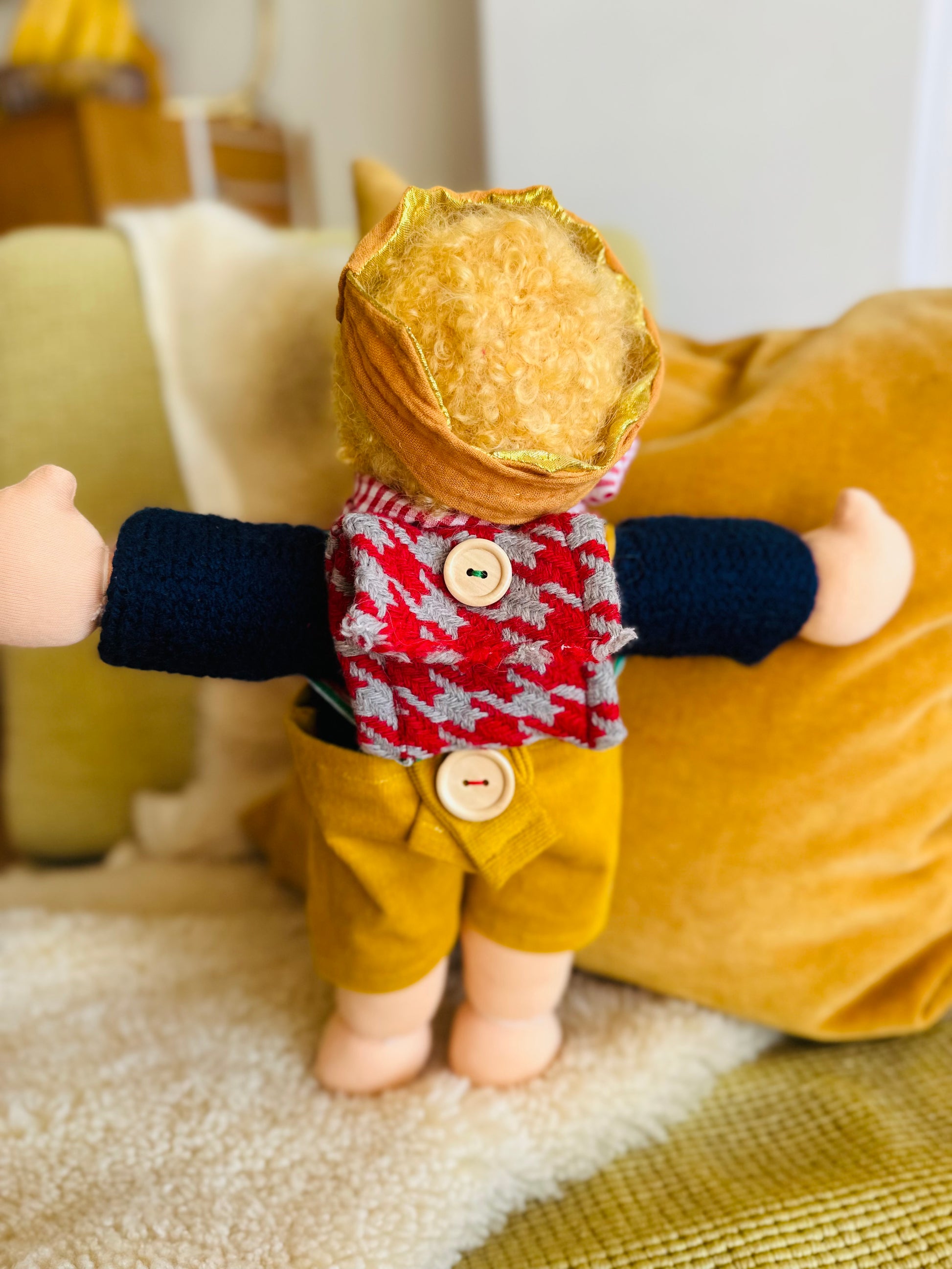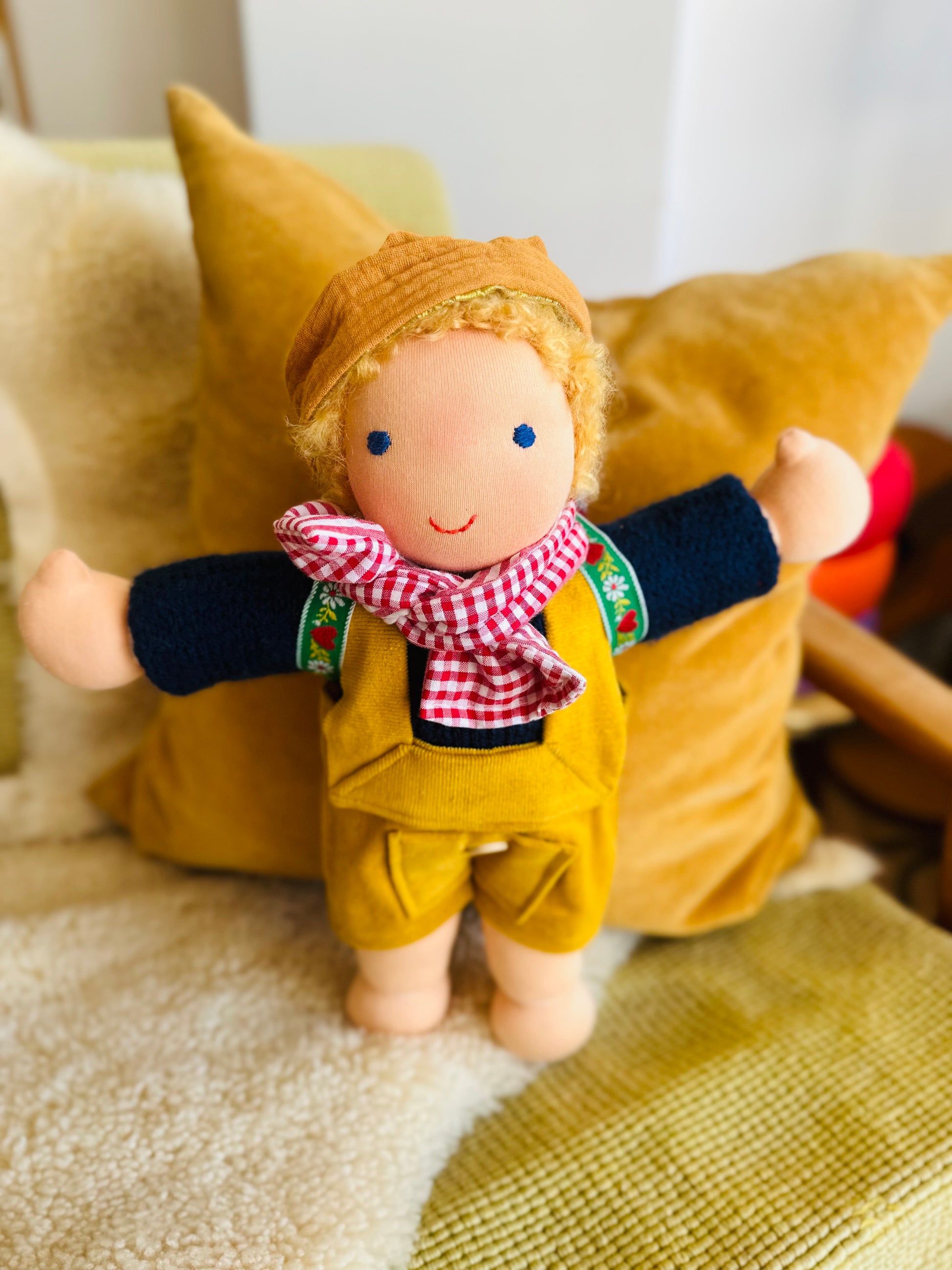 JUNES 👑 ist ein kleines, ca. 36 cm großes, kuscheliges Waldorf-Puppenkind.