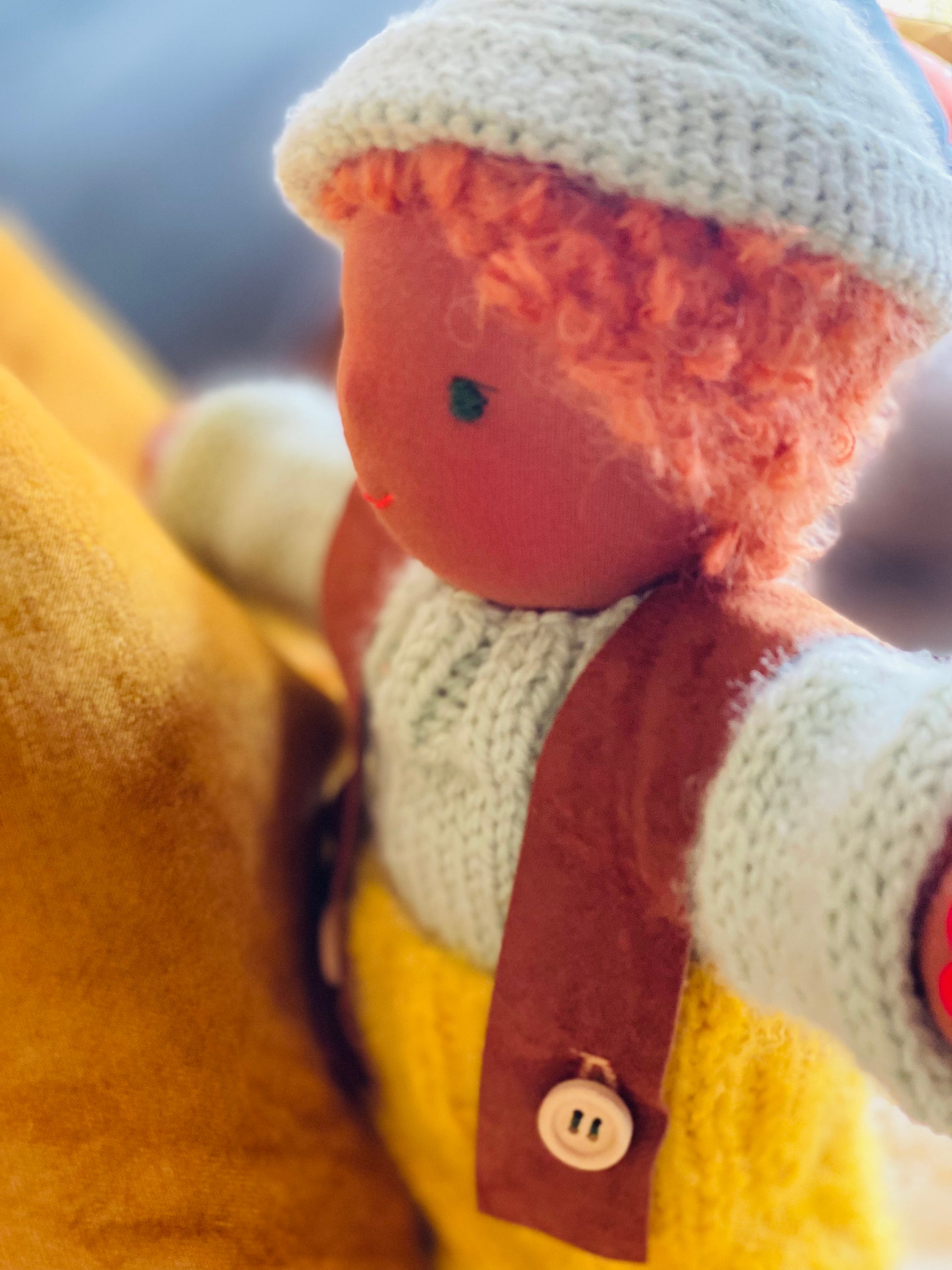 Die Mohair-Locke besteht aus 74% Mohair, 17% Schurwolle und 9% Polyamid und der Puppenjersey kommt von “Puppenstoffe” aus der Schweiz ist OEKO-TEX® zertifiziert und super robust.